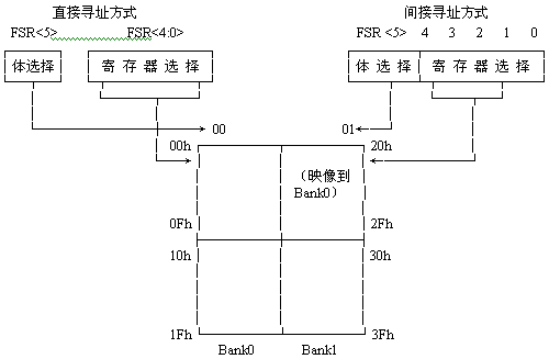 INDF是一個物理上不存在的寄存器,只是一個邏輯寄存器,用來進行間接尋址,實際的尋址地址為FSR<4:0>的值。